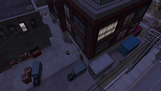 Dein Radar zeigt dir die Gegner als rote Punkte. Sie greifen in mehreren Wellen und von allen Seiten an, teils zu Fuß, teils in Autos. Manche sind nur mit Pistolen bewaffnet, andere feuern mit Micro-SMGs. Leg sie um, ehe sie sich an den Lastern zu schaffen machen können und sammel ihre Waffen auf. Im roten Müllcontainer steckt ebenfalls eine Micro-SMG. Sollte deine Gesundheit leiden, findest du auf dem Parkplatz eine Schutzweste.