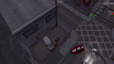 Die Bombe sprengt ein Loch in die Hauswand, durch das Hsins Männer im Inneren des Gebäudes verschwinden. Fahr den Burrito rückwärts an das Sprengloch, steig aus und bewache die südliche Zufahrt des Innenhofes. Sobald du in die Markierung getreten bist, rücken jetzt nacheinander etliche schießwütige Koreaner in ihren Chavos an. Zunächst zwei Fahrzeuge von Süden, dann zwei weitere von Westen. Nimm deine Waffe und erledige die aus allen Ecken quellenden Gangster, ehe sie den Burrito zerstören können!
