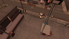 Geh zur Schalttafel am Tor, zertrümmere das Eingabe-Paneel und schließ die nun sichtbaren Drähte kurz (natürlich per Touch-Pen). Das Tor öffnet sich. Steig zurück in dein Auto, fahr auf den Hof des Warenhauses und erschieß oder überfahre die aufkreuzenden Wachen. Begib dich jetzt zum Lager-Van, einem Burrito, steig ein und schließ die Zündung per Schraubenzieher (Touch-Pen) kurz.