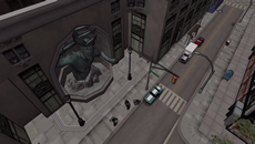 Das GPS-Signal bleibt gestört – es muss demnach einen weiteren Störsender geben. Setze dich wieder ins Auto und orientiere dich erneut am Störsignal-Balken. Fahre entlang der Iron Street weiter nach Westen, bis zur zweiten Kreuzung an der Galveston Avenue. Gleich nördlich der RON-Tankstelle in Meat Quarter liegt hier ein Gebäude, auf dessen Flachdach sich die zweite Störer-Crew breitgemacht hat. Mittels einer Außentreppe gelangst du auf das Dach. Passe gut auf dich auf, die Bewacher setzen diesmal SMGs ein. Erledige sie und zerstöre auch die zweite Sendeapparatur.