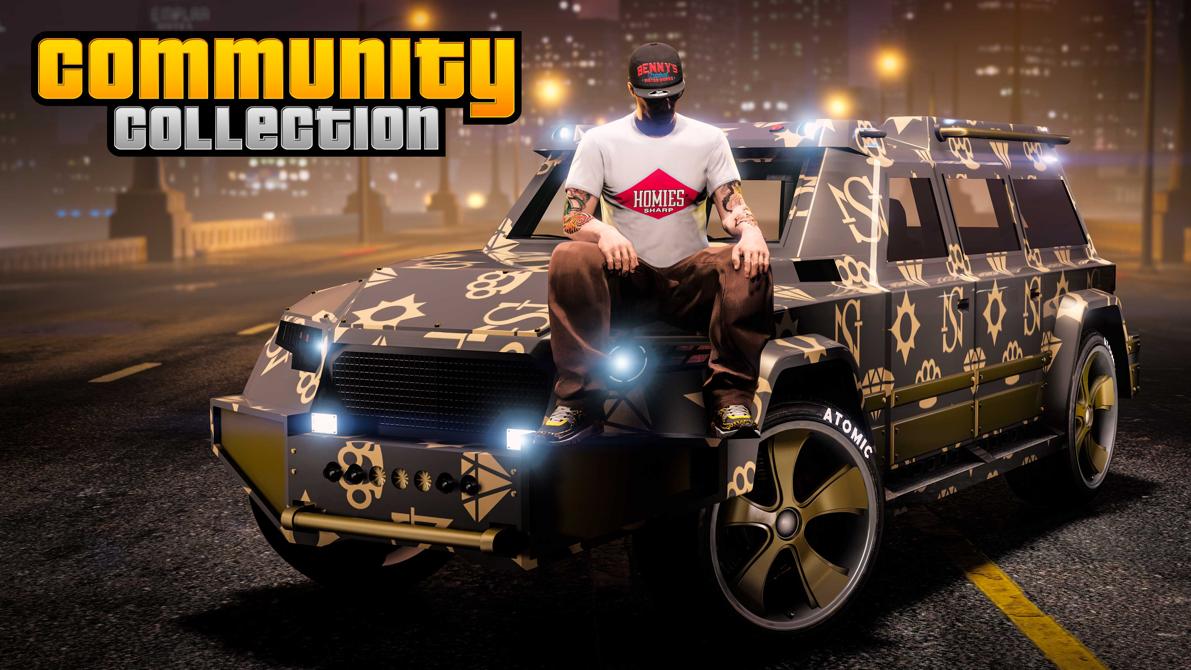 Dominiert diesen Monat die Community-Serie und schließt alle unten aufgeführten wöchentlichen Herausforderungen in den nächsten drei Wochen ab, um Belohnungen von Los Santos‘ stylishsten Marken zu erhalten – die Community-Kollektion. Diese besteht aus dem Homies-Sharp-T-Shirt, der Benny's-Kappe und den neuen Designs „Schlagring“ und „Sessanta Nove (Monogramm)“ für den HVY Nightshark (Geländewagen).