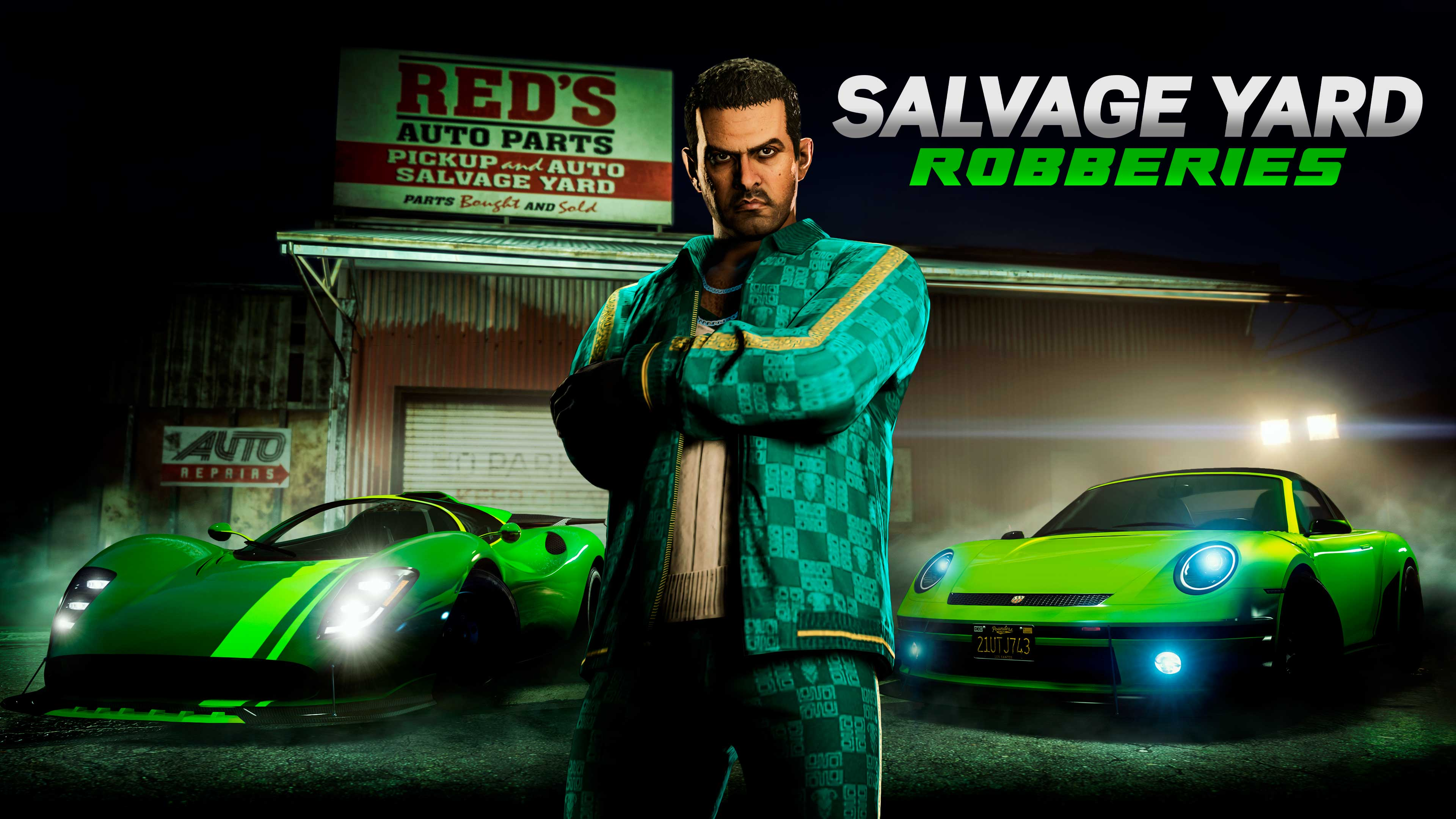 Verwertet mit einem erfolgreichen Schrotthandel herrenlose Fahrzeuge, die in den Straßen von Los Santos herumstehen. Yusuf und Jamal Amir unterstützen euch beim Start, und der Überschuss an verlassenen Fahrzeugen beschert euch 2x GTA$ an täglichen Einnahmen beim Schrotthandel (4x für Mitglieder bei GTA+).