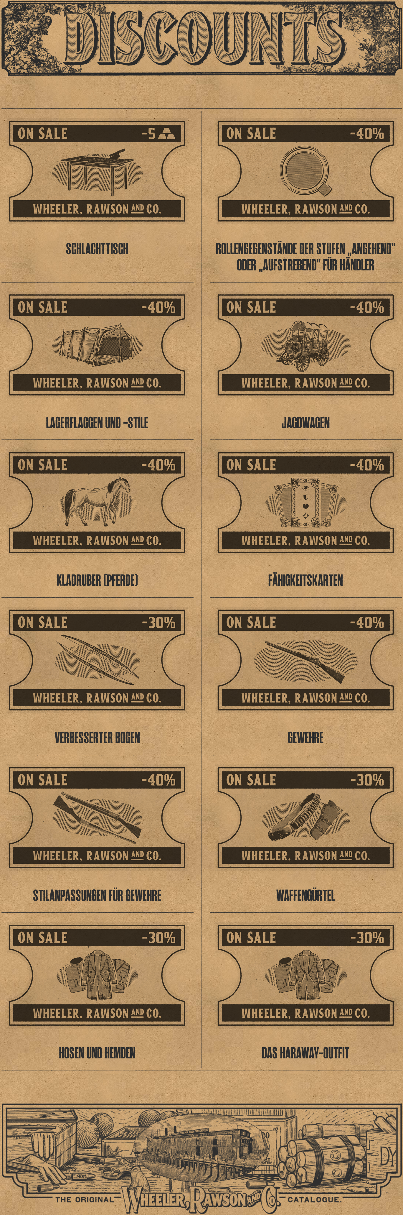 Vorsicht beim Zielen und eurer Waffenwahl, denn Händler, die ihre Beute sauber erlegen, können diesen Monat doppelte Händlermaterialien für den Verkauf perfekter Kadaver, Pelze, Häute und Felle an Cripps verdienen. Sobald ihr genügend verkaufbare Waren angesammelt habt, bringt euch der Abschluss von Händlerverkäufen doppelte RDO$, XP und Rollen-XP ein.