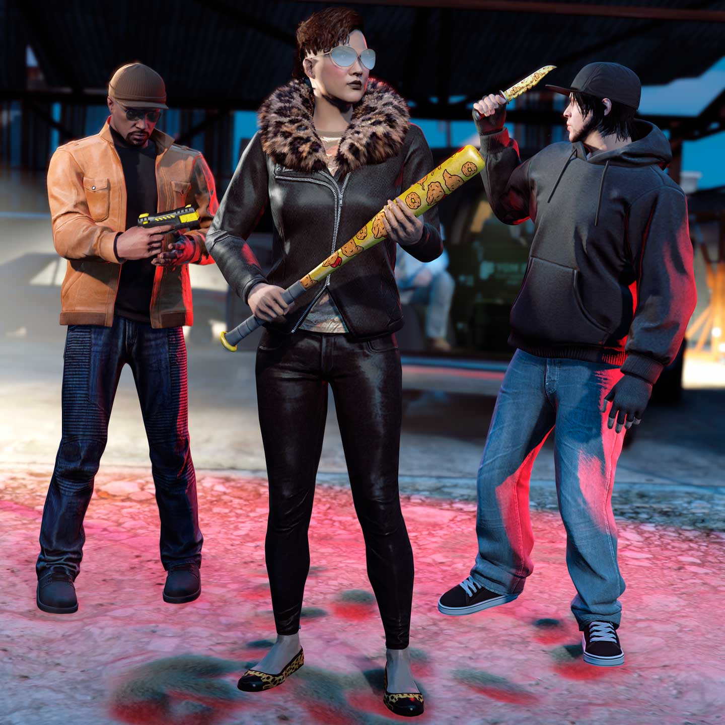 Schaut beim Waffentransporter vorbei und holt euch zwei exklusive Waffendesigns: das Cluckin‘-Bell-Baseballschlägerdesign und das Tequilya-Messerdesign. Und wenn ihr schon mal da seid, gibt es auch noch einen Elektroschocker oben drauf – kostenlos für Mitglieder bei GTA+.